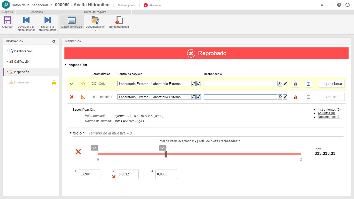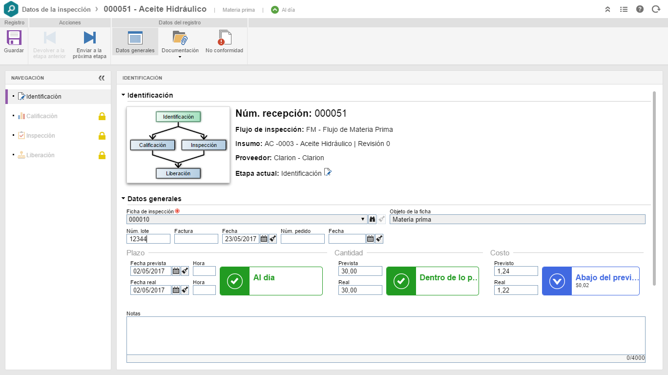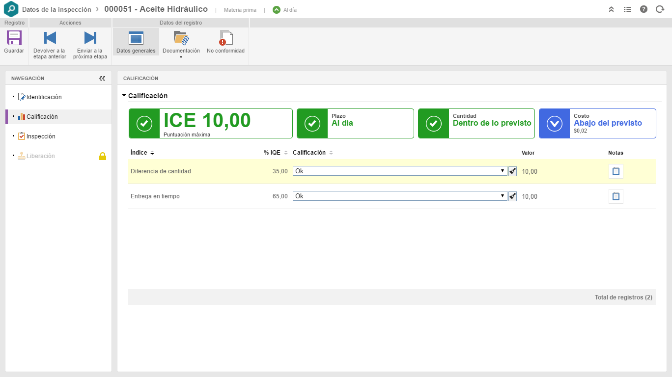 - Genera no conformidades directamente de la etapa de inspección, en caso que los materiales inspeccionados estén por debajo del estándar de calidad estipulado.